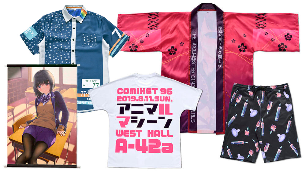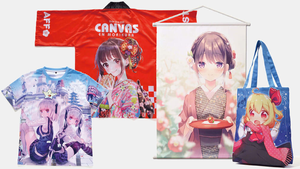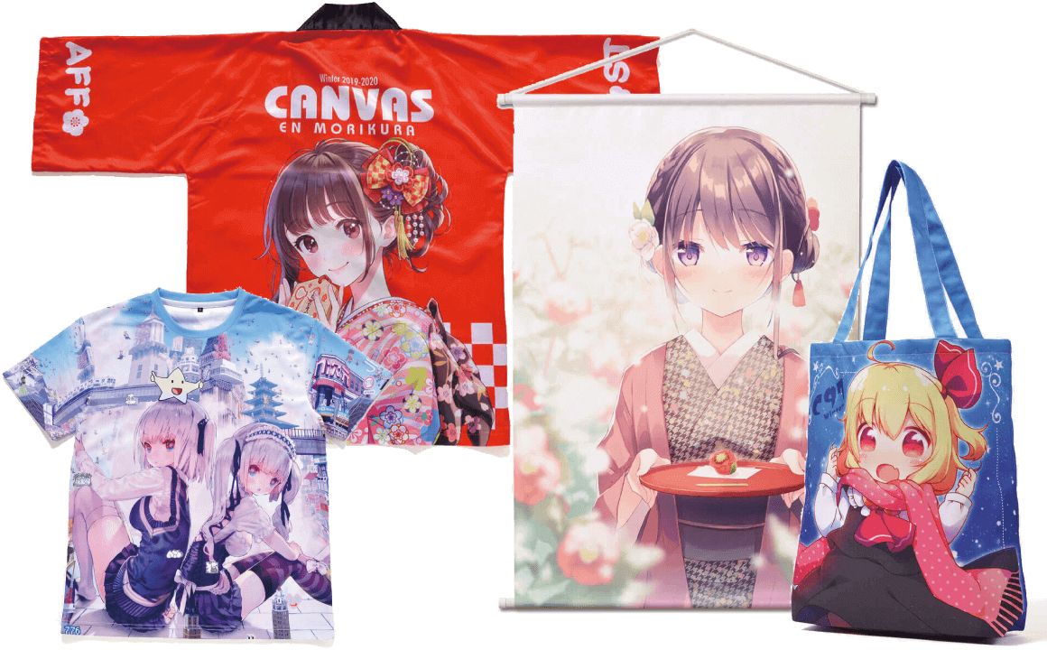 全面プリントが美しい Tシャツ10枚〜 ライブで!フェスで!推しに団結! 法被10枚〜 上質な生地が織りなす特別な一枚 タペストリー20枚〜 寝室を飾る美麗ファブリック 抱き枕・枕カバー20個〜 選べる!使える定番グッズ タオル10枚〜 生活を彩る美しいプリント クッション10個〜 ぬくもり&プリント映えを両立! ブランケット20枚〜 着心地抜群!豊富なバリエーション パーカー・スウェット10枚〜 襟元まで自由なプリントを! カジュアルシャツ10枚〜 生地にこだわる本格派のあなたへ アウター10着〜 ハイグレード生地を採用 ハーフパンツ20枚〜 便利で、映える。ノベルティにも バッグ20個〜 宣伝にも使える定番アイテム ストラップ50個〜 遊びにも、アメニティにも アンダーウェア20枚〜 エチケットも楽しく守りたい 布マスク50枚〜