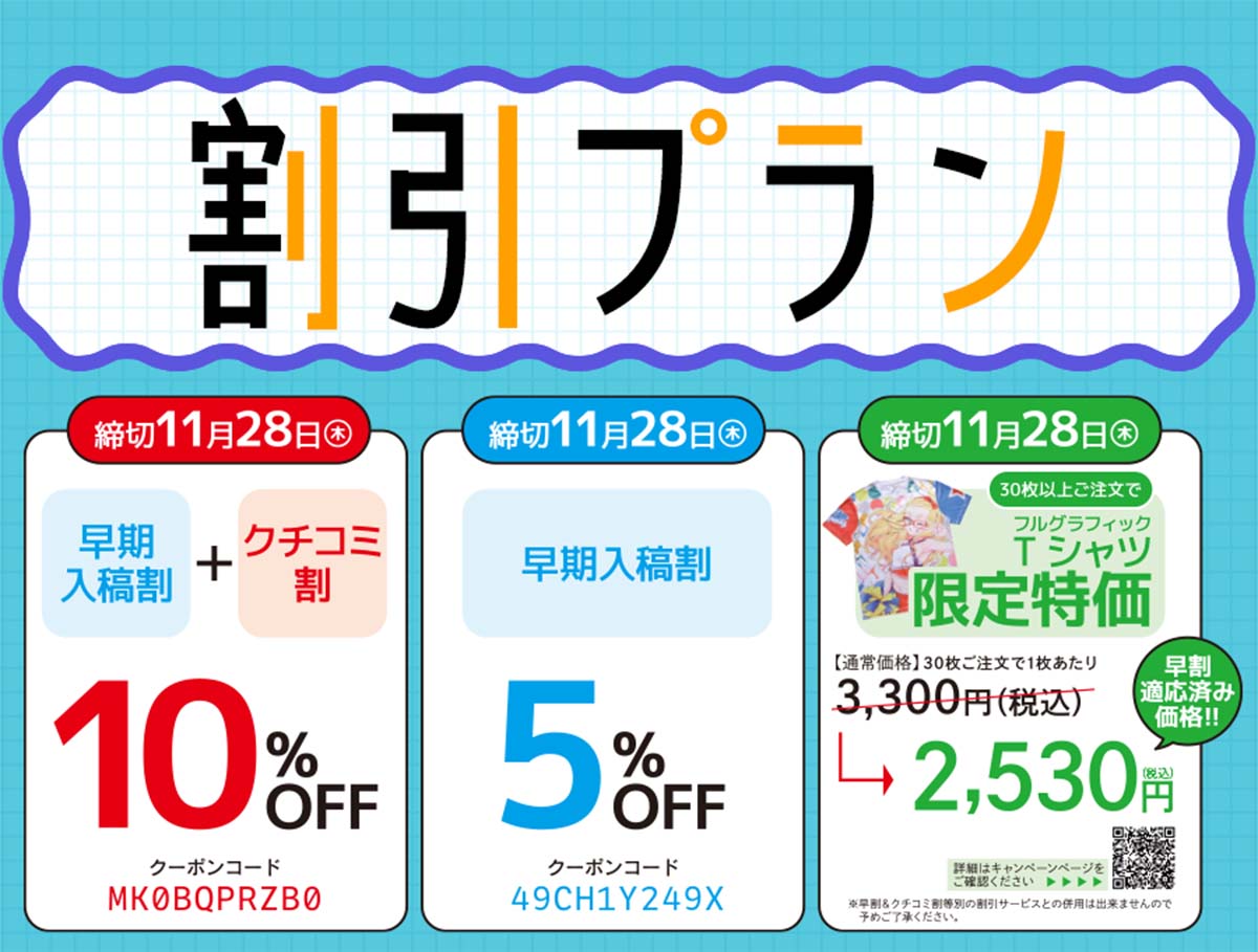 ★コミックマーケット当日のグッズだけでなく事後通販分の製作も割引の対象となります。