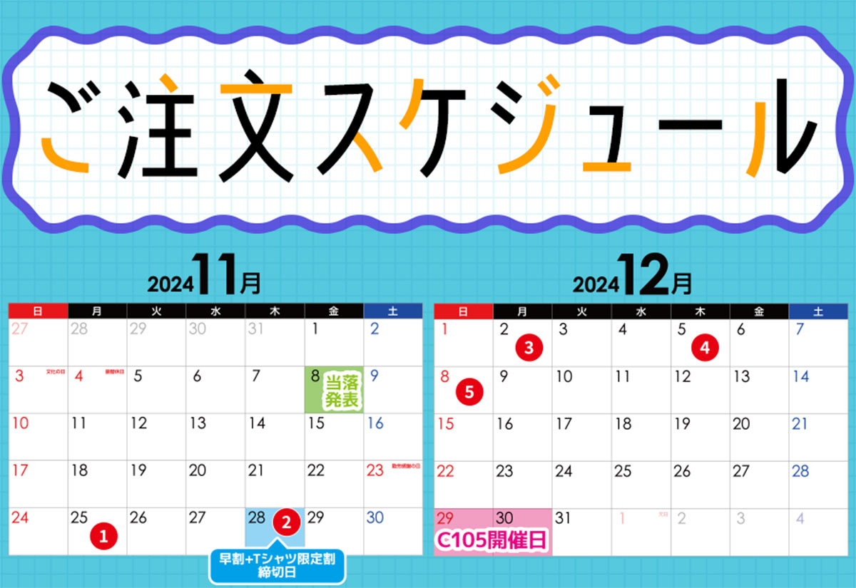 【イベント名】 コミックマーケット105 【開催日】 2024年 12月29日(日) 2024年 12月30日(月) |