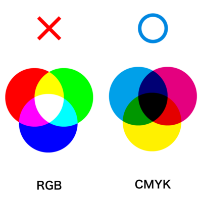 拡大比率が違うため微妙にズレが発生します。また塗り足しが少ない場合、白地が出てしまい印刷時に絵柄が切れてしまう場合があります。