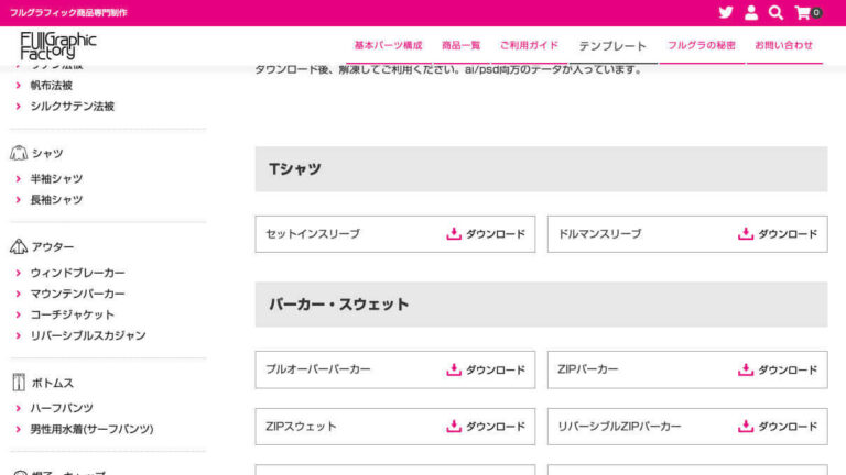 作りたい商品が決まったら各商品のテンプレートをダウンロードしてください。(データ作成は必ず専用のテンプレートを利用しておこなってください。)