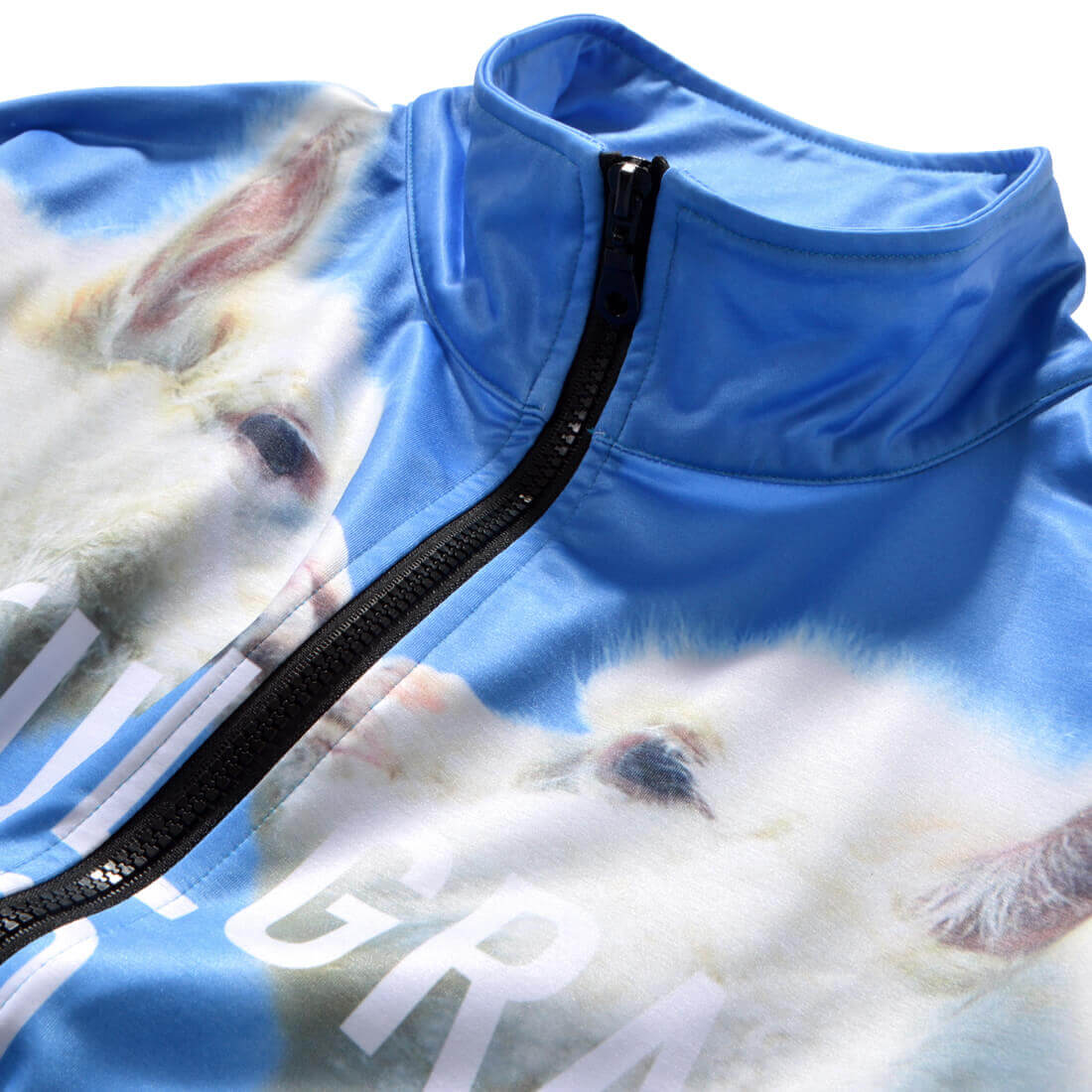 ジャージのようなスポーティーさが魅力のスタンド襟タイプのZIPスウェット。パーカーと違いフードがないため背中全面をフルに使ってイラストを魅せられます!