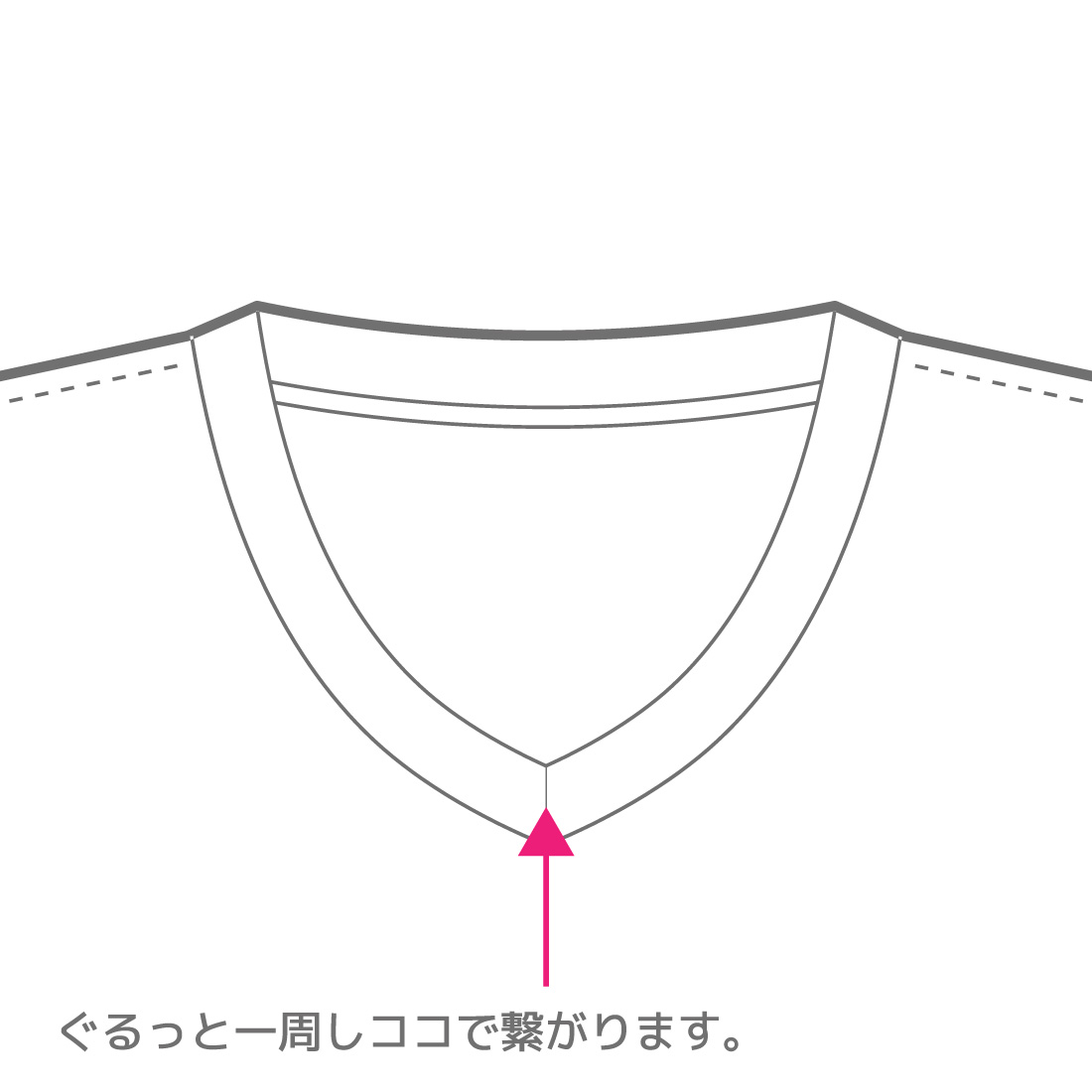 一般的にもよく知られるV ネック形状です。※U ネックとは入稿テンプレートが異なりますのでご注意ください。