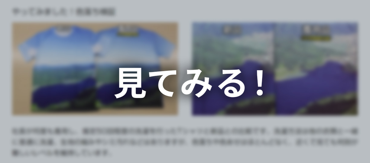 また、せっかく作ったフルグラフィックTシャツがすぐ色落ち・色褪せたら嫌だなと心配に思われている方は、弊社社長がフルグラフィックプリントの色落ち検証を試みた記録が残ってましたので覗いてみてください!