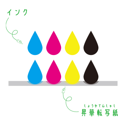 昇華転写紙と呼ばれる専用の紙に専用のインクで専用のプリンターを使ってデザインを印刷します。